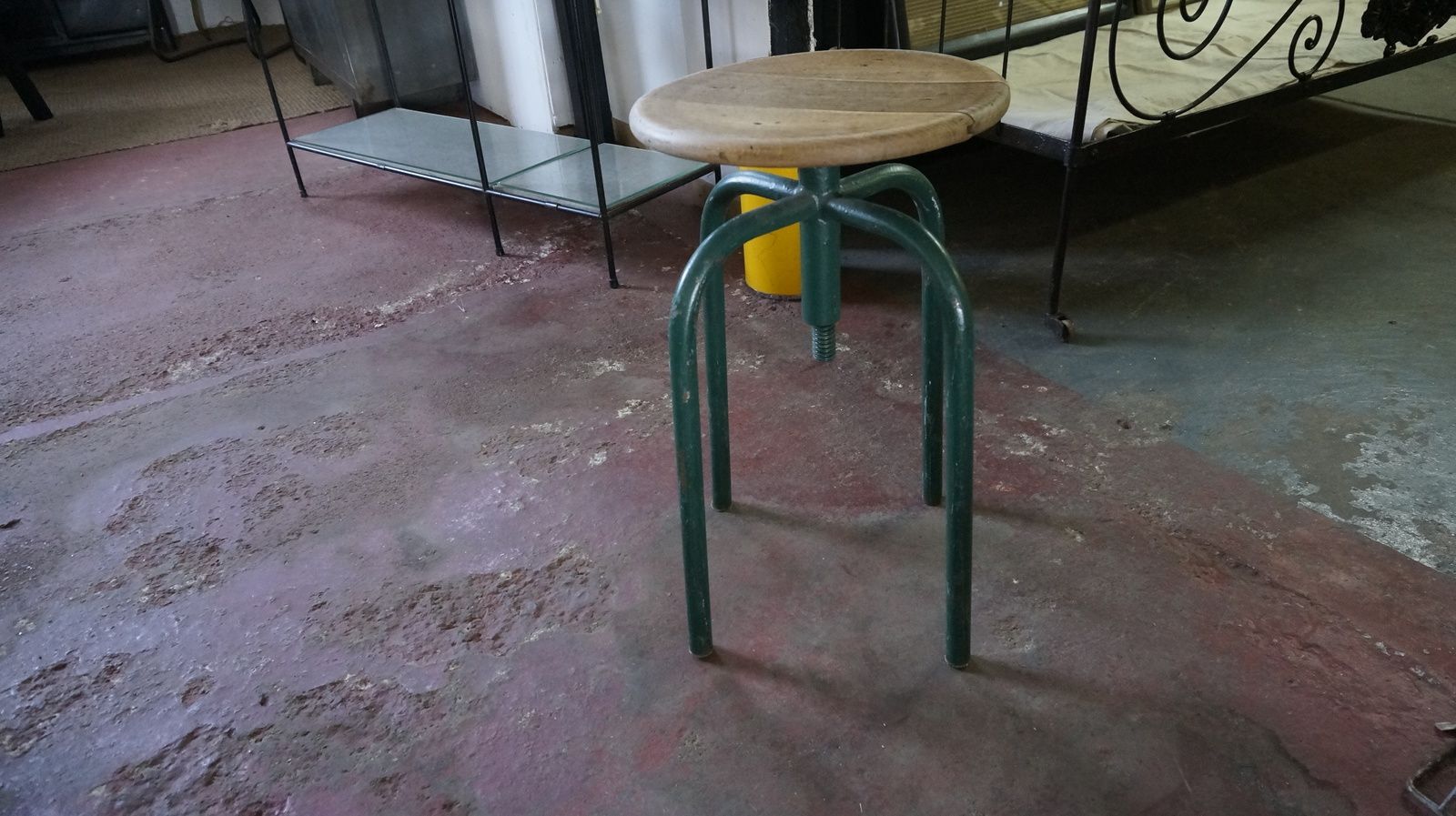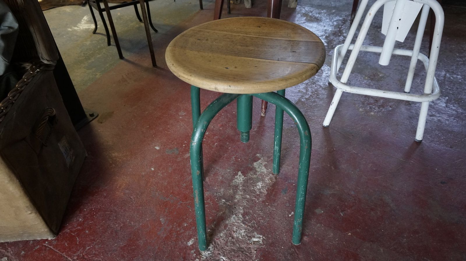 ANCIEN TABOURET A VIS REGLEBLE EN HAUTEUR PIED EN METAL PAINT ET ASSISE EN BOIS